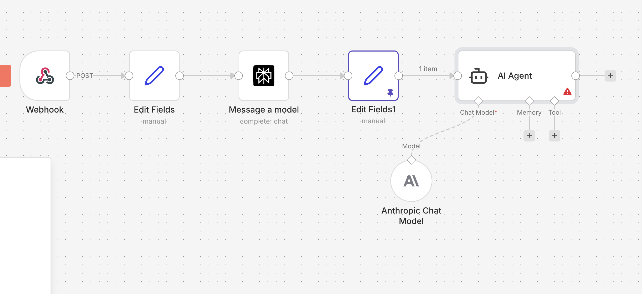 I’m in the AI Agent node. The Chat Model is properly configured and connected, so that’s not the issue.