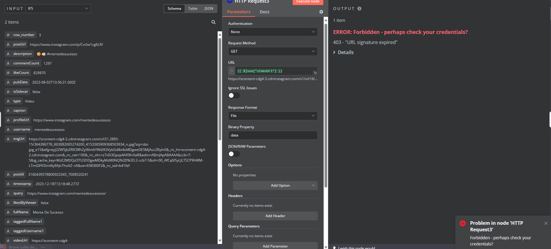 - If I enter the URL directly into the HTTP Request’s URL field, it works without any issues.