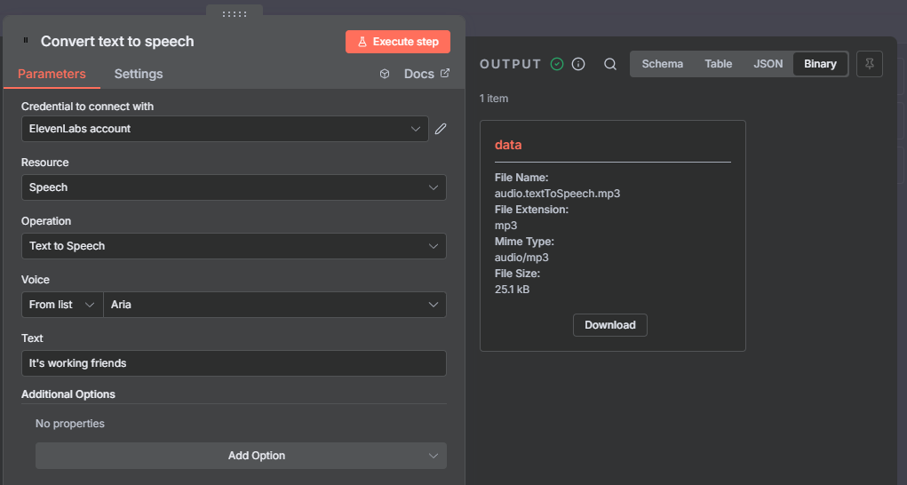 I’m currently using the 14-day free trial of n8n Cloud to test a potential automation flow for my business, and I’m running into a persistent issue integrating ElevenLabs’ Text-to-Speech API.