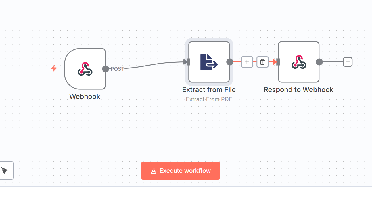 I created a sample workflow using only the Extract from PDF node to test why it wasn’t working, but even with this simplified workflow, it still did not work.