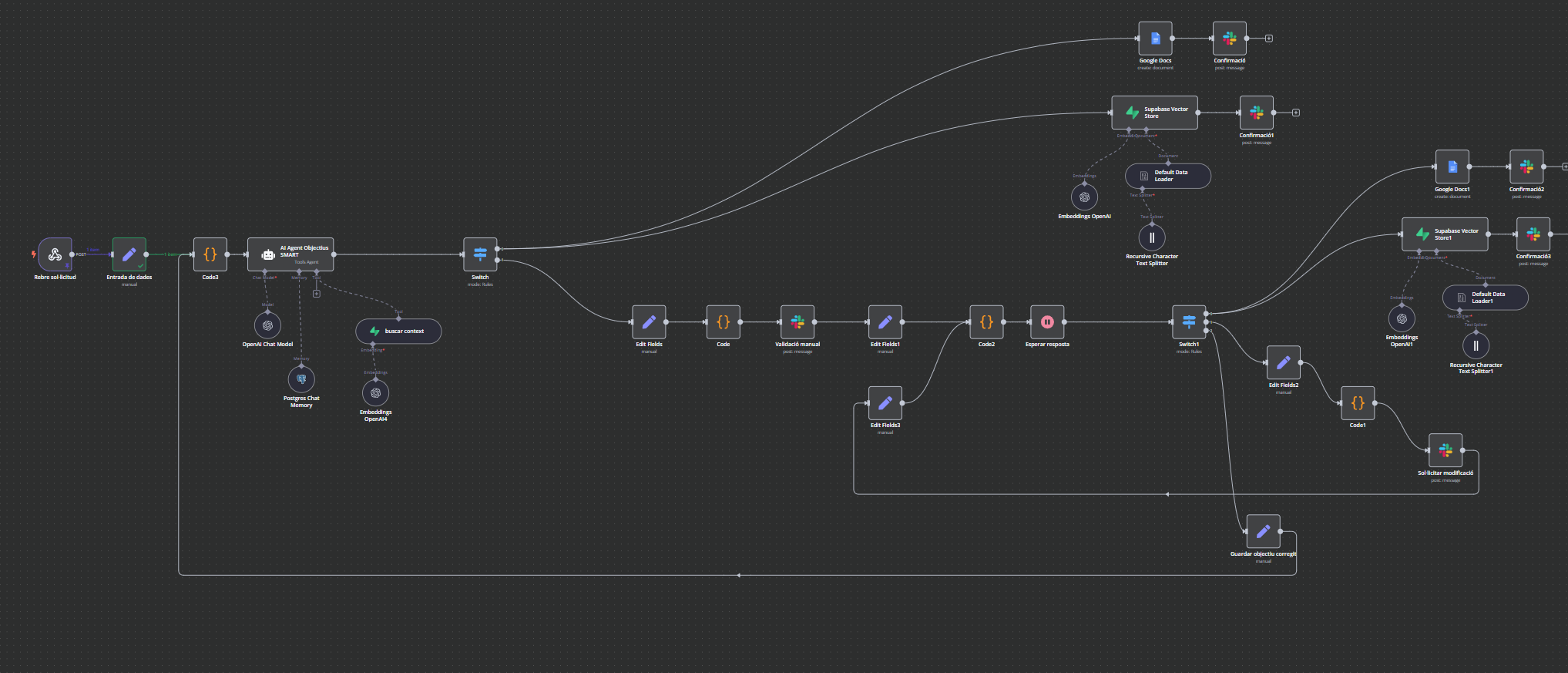 Hi! I’m building a workflow where an AI Agent processes input data and returns a response. The user can then validate or modify the response via Slack. If modified, the flow enters a loop and sends the new input back to the agent.