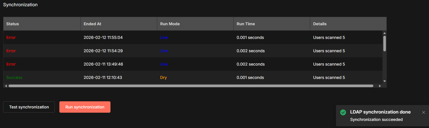 Also, if I run a test synchronization, i get a success, but if I run it, I get an error, but the toast notification says success.
