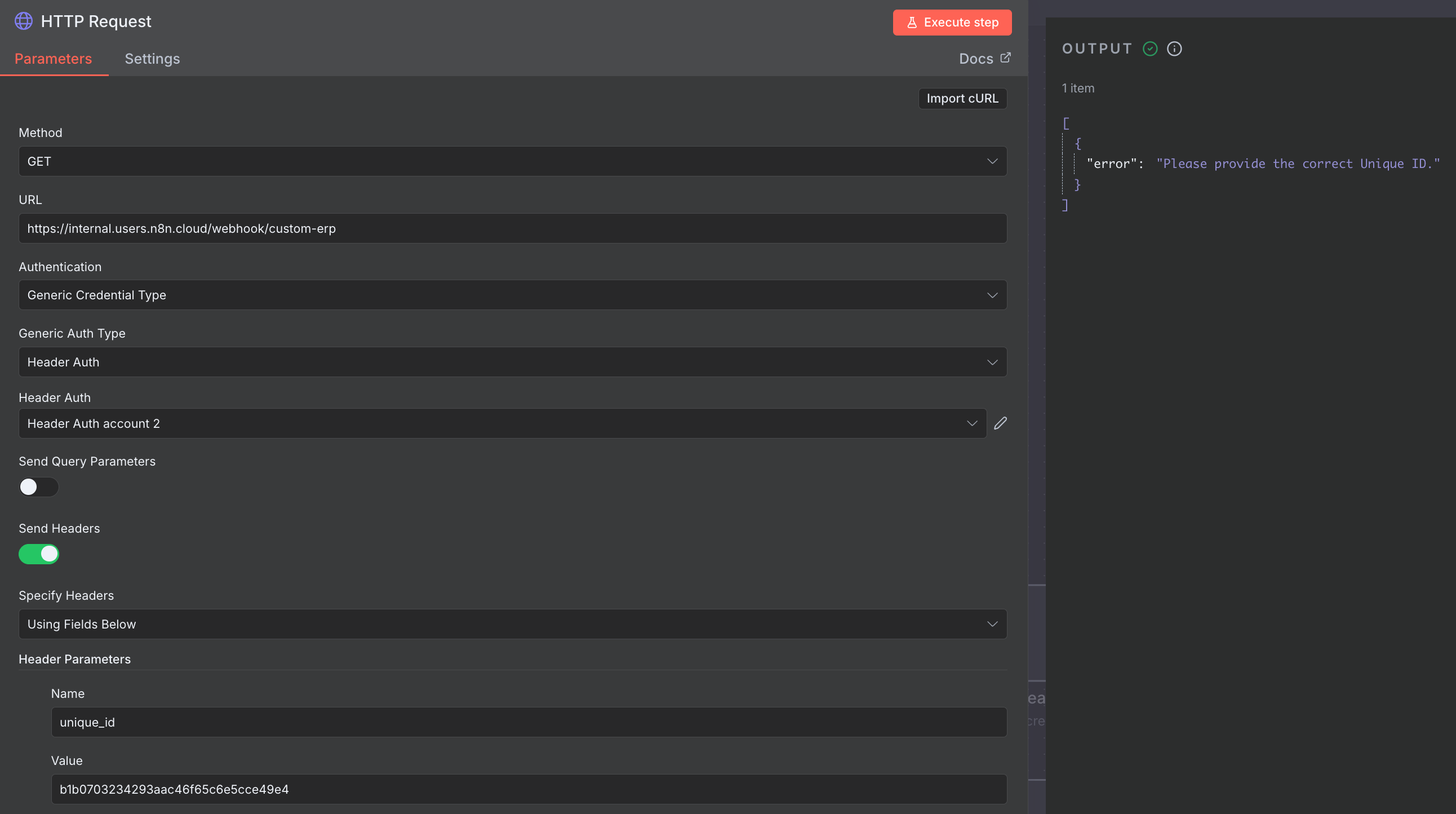 {“error”:“Please provide the correct Unique ID.”}