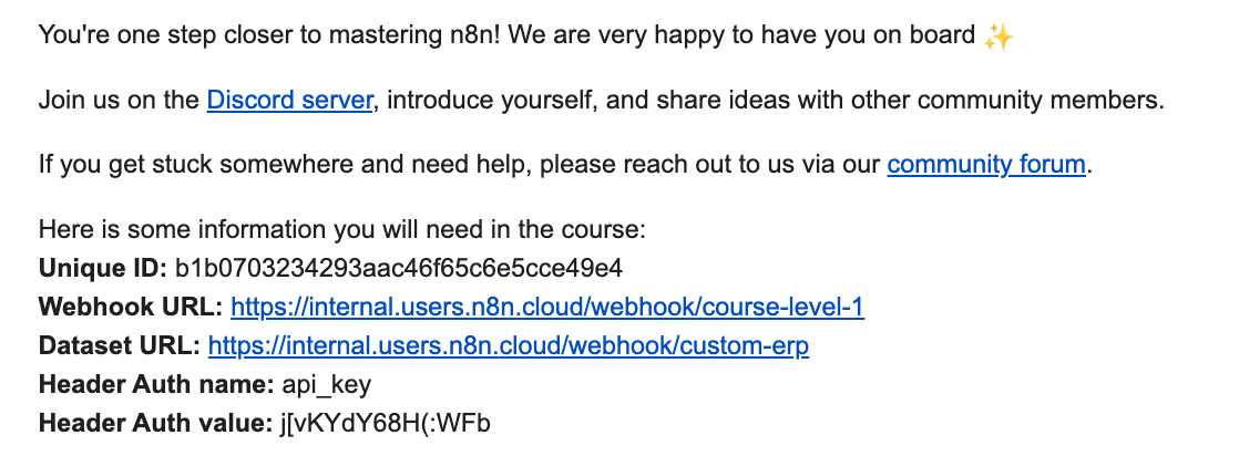 - I received the same credentials for level 1 as I did for level 2 via email (just with different webhook and dataset urls)