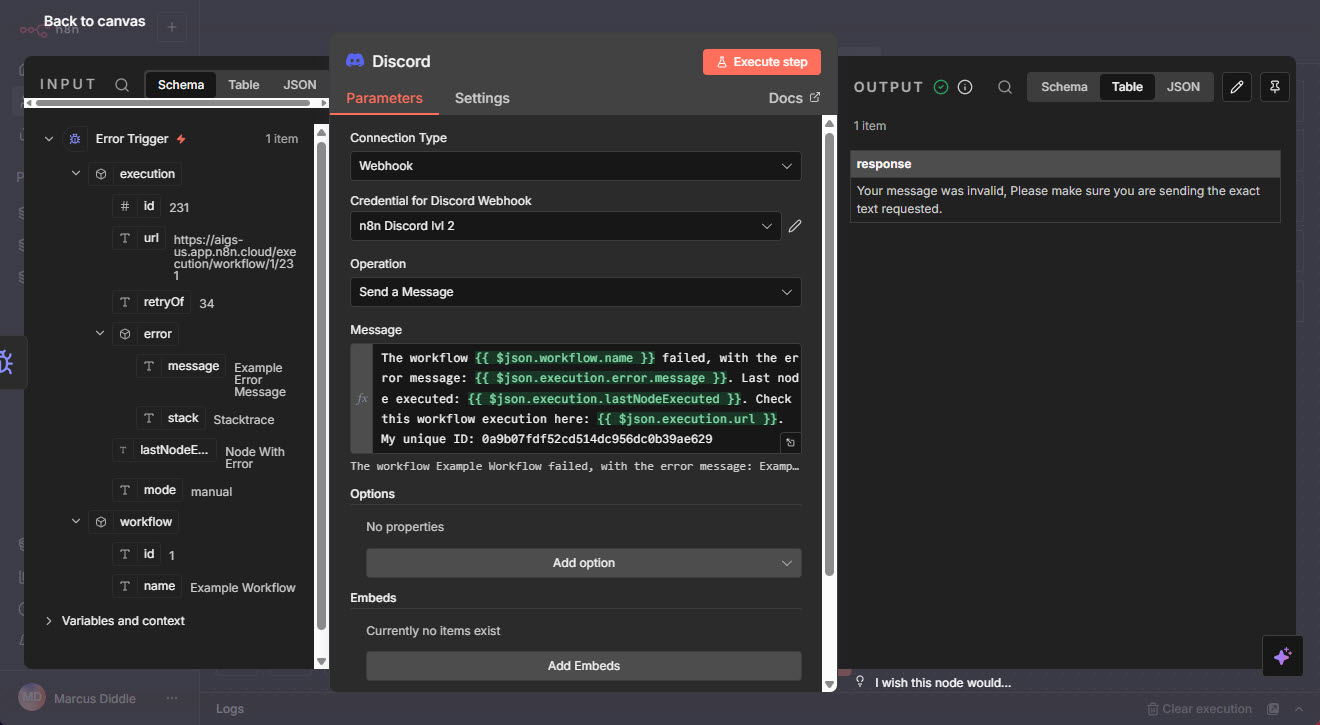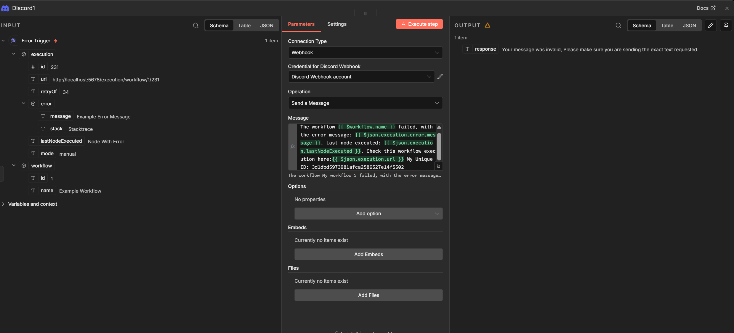 The workflows execute successfully, and notifications are being sent to the Discord channel as instructed.