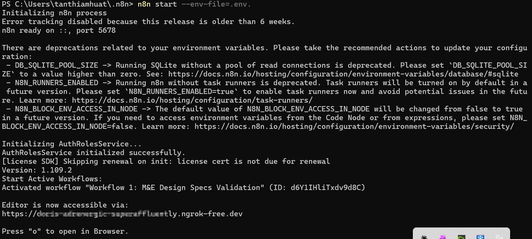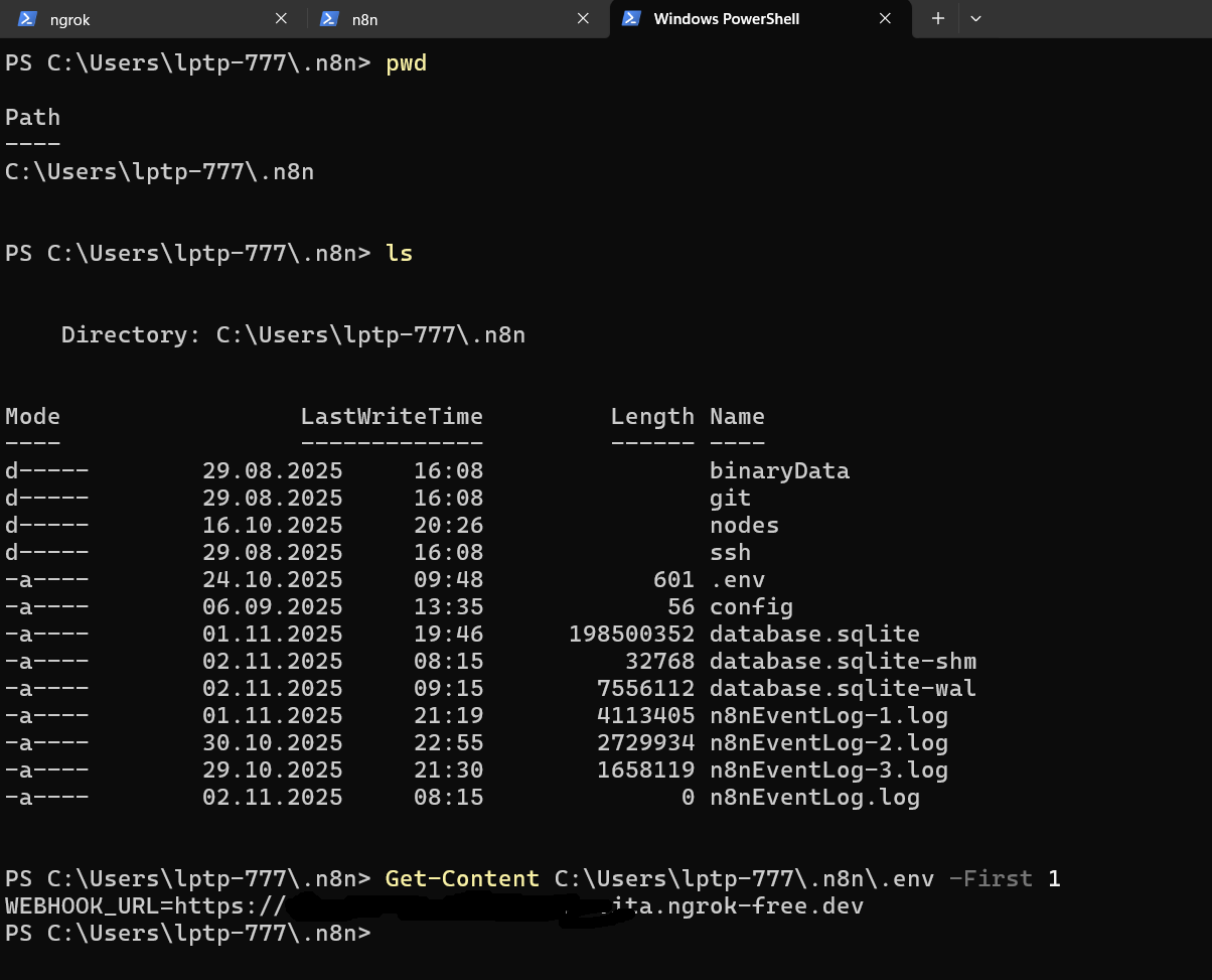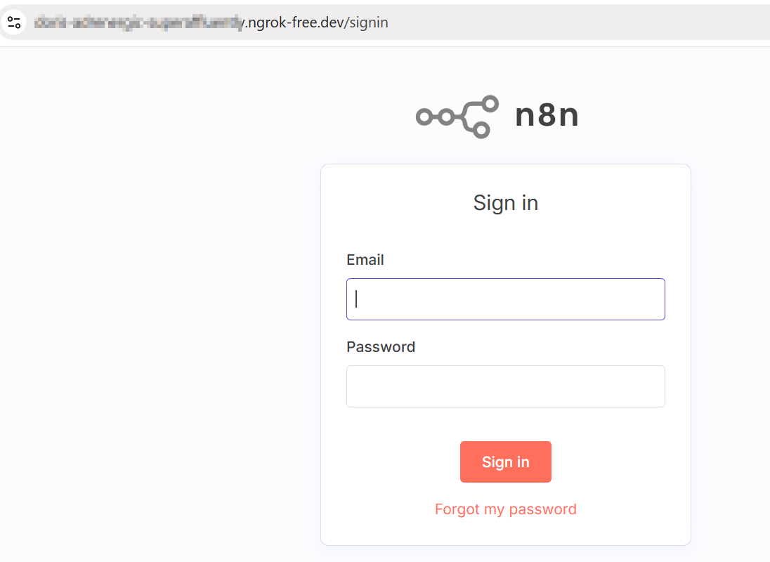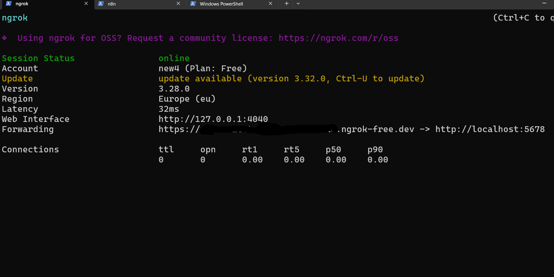 Copy that address, and set in your n8n .env variable ‘‘WEBHOOK_URL=NGROK-URL-HERE”