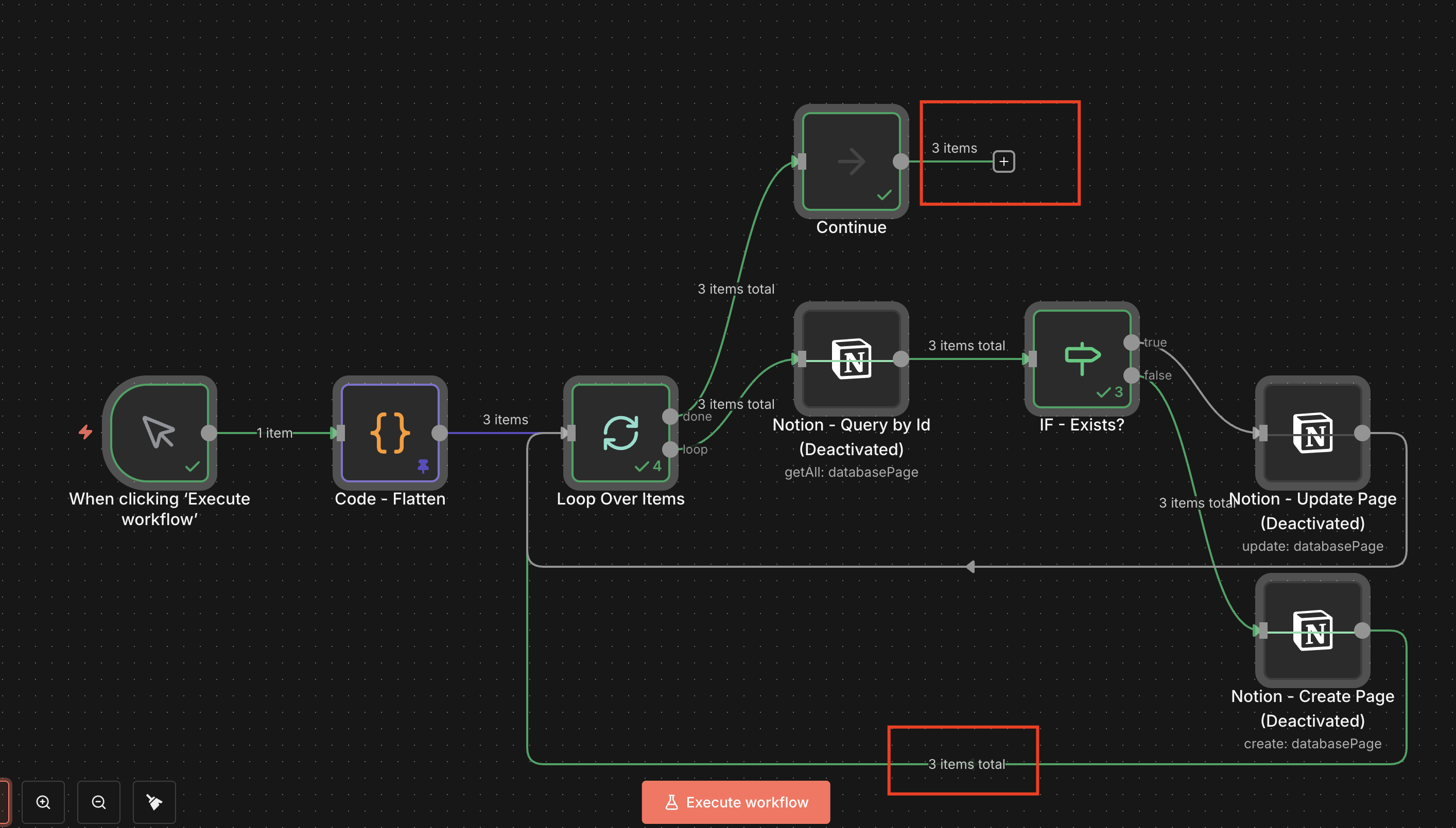 The Loop starts, but only the first page is updated in Notion, then the execution finishes as if everything were done (no error).