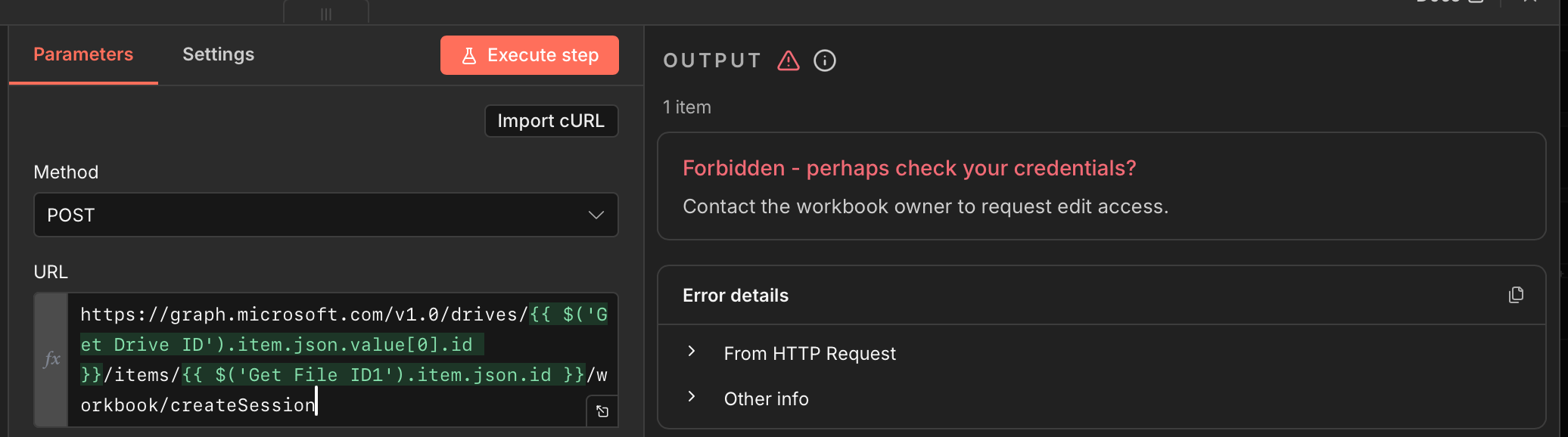 Hi @patrickmau! Welckmw Back to the n8n community . Make sure your Microsoft OAuth credentials have the correct Graph scopes like Sites.ReadWrite.All and delegated file permissions and then re authenticate the credential. If it still fails the usual workaround is to download the file via SharePoint or Graph update it locally using a Spreadsheet File node and upload it back since direct session writes are not reliably supported for Teams or SharePoint files.