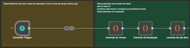 I have this workflow in n8n that I use to send messages on WhatsApp. I have two groups, and over the last week, it started sending duplicate messages to both groups. However, when I run a manual test (forcing execution or changing the schedule trigger time), it sends only one message correctly. But the next day, it starts sending two messages again