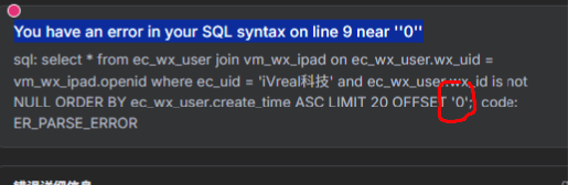 The offset appears to be a string in the parameters