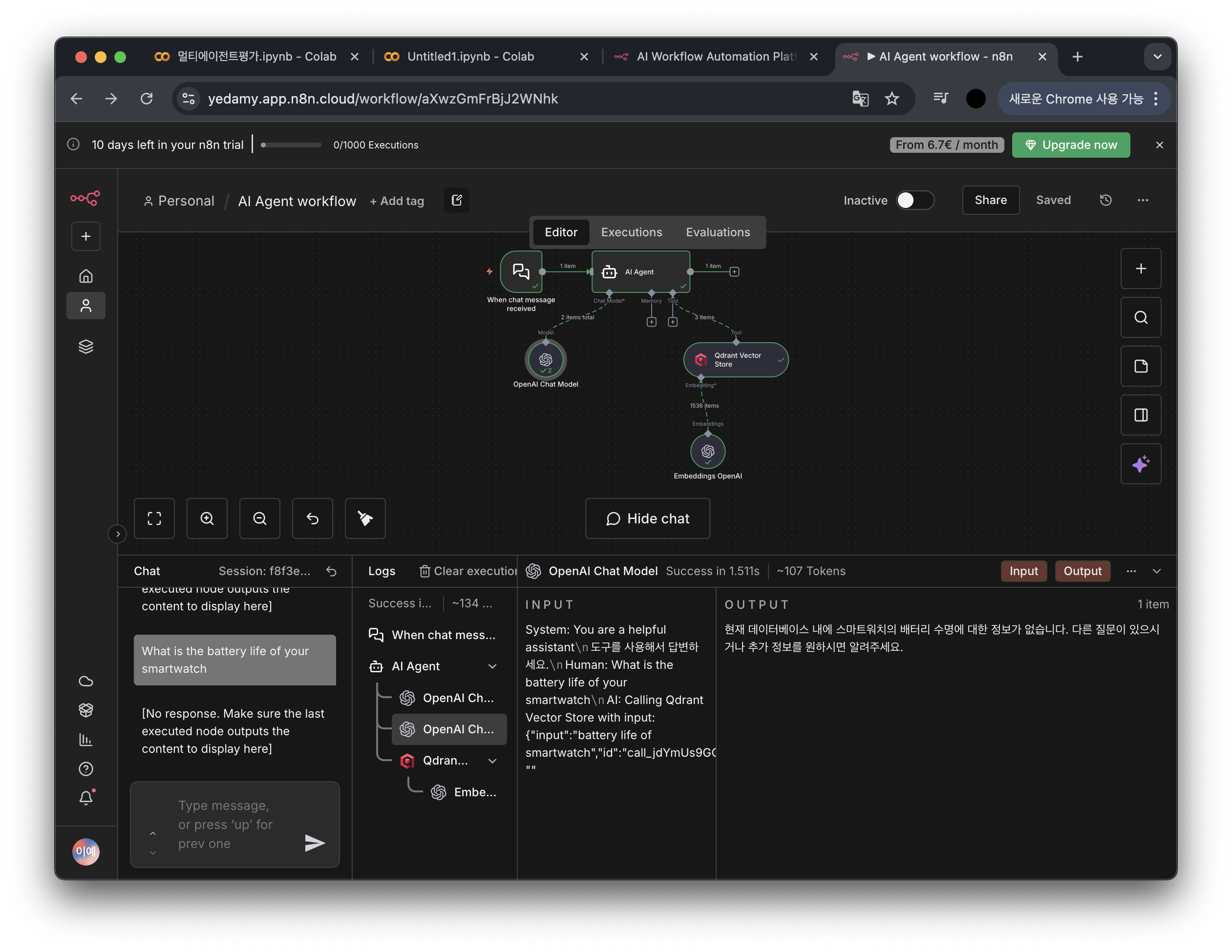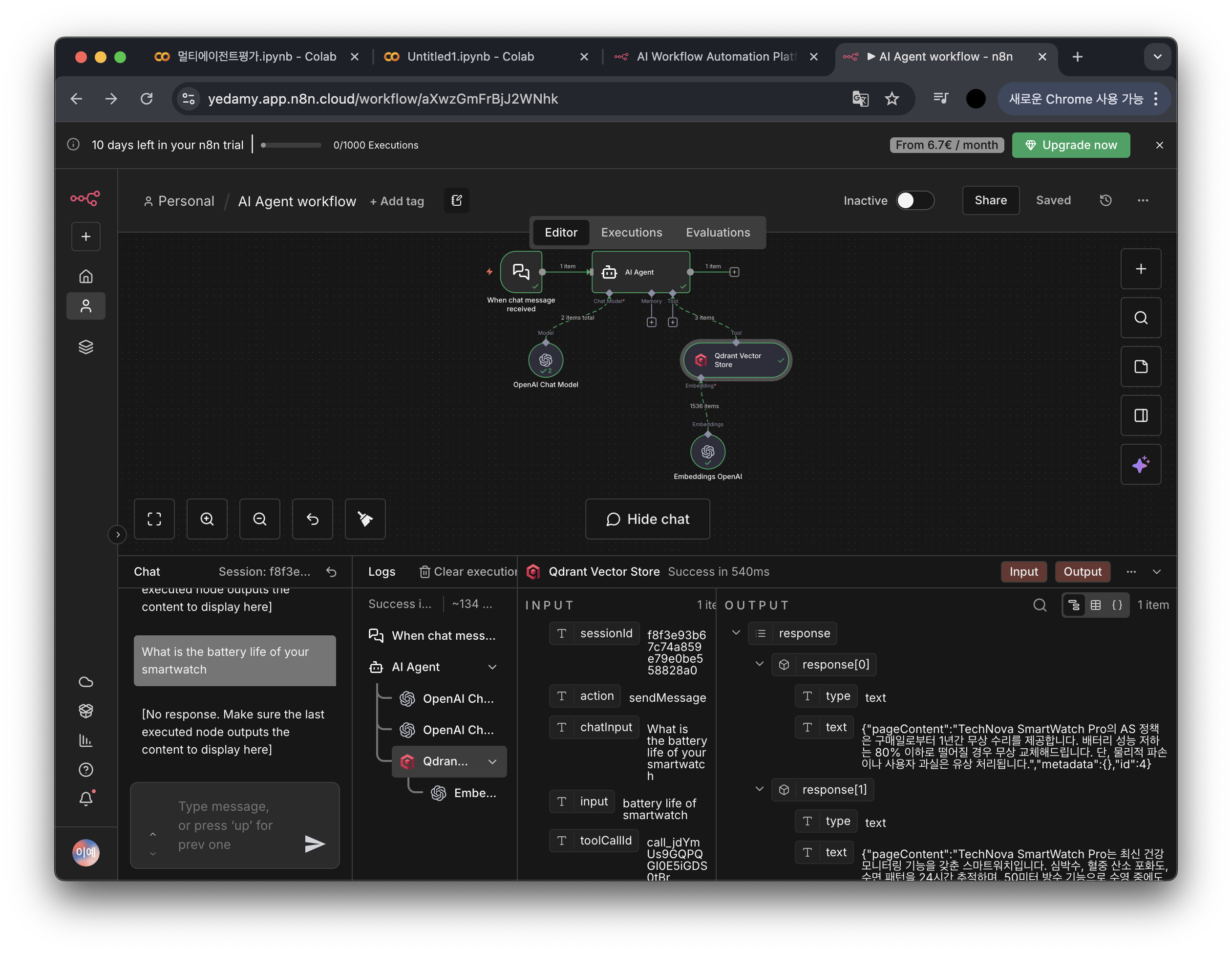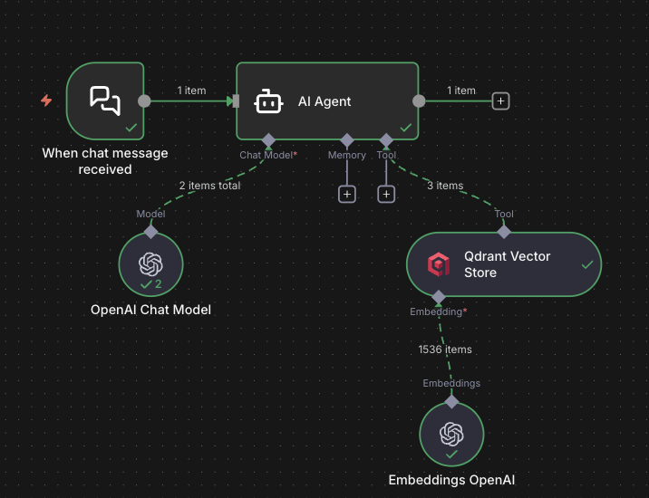 OpenAI → OpenAI → Qdrantwhich makes it seem like the agent decides before properly using the tool output.