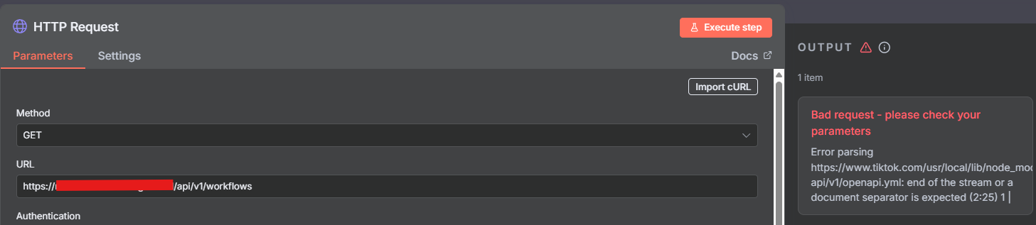 {“message”:“Error parsing https://www.tiktok.com/usr/local/lib/node_modules/n8n/dist/public-api/v1/openapi.yml: end of the stream or a document separator is expected (2:25)\n\n 1 | <meta …\n 2 | -webkit-box-pack: center;\n-----------------------------^\n 3 | -ms-flex-pack: center;\n 4 | -webkit-justify-content: center;”}