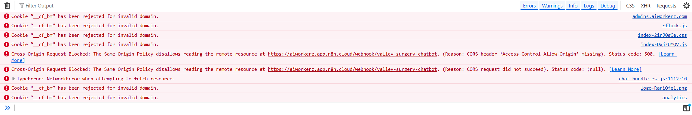 Hi, I have spent hours on this and can’t get it to work. I’m trying to get the n8n chat widget placed on a website to call a webhook. I have attached a screenshot of the error in the browser and also the webhook setup. Can anyone help please. Thanks, Marcus