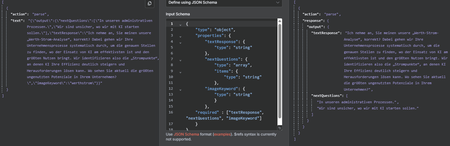 But yes, I am using an Agent node, The view is a parsing of the structured Output parser node for this Agent.