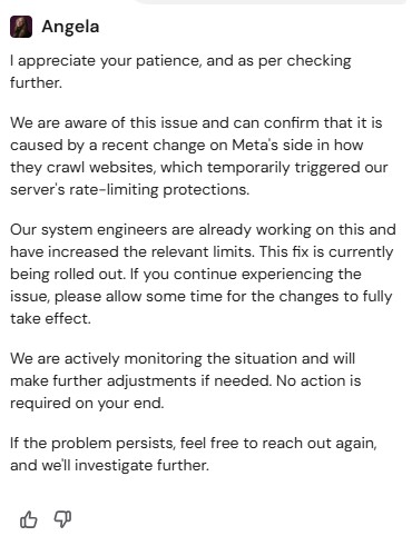 I’m planning to open a support ticket with Hostinger requesting they whitelist Meta’s IP ranges. @henryford did you already contact Hostinger support? If so, how did you frame the ticket? Any specific information or approach that worked better to get their attention on this?