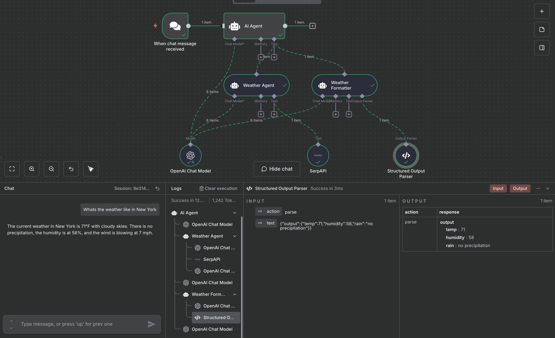 Take note the agent for structured output doesnt really make a difference in this example, but it shows that you can get multiple sub agents to get called
