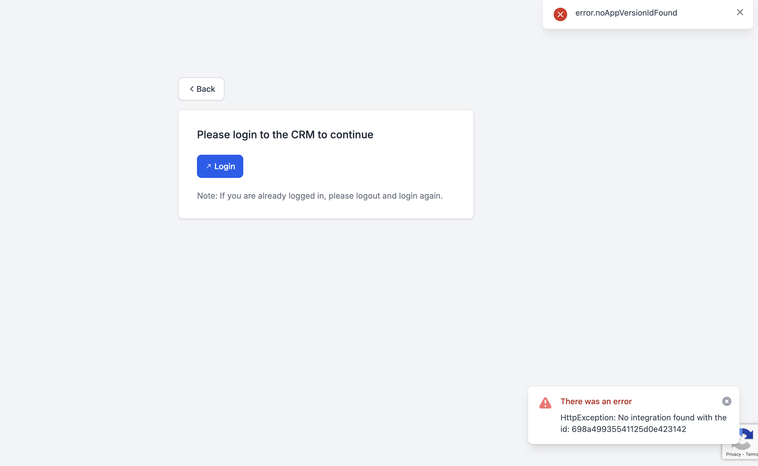 HttpException: No integration found with the id: [my app id]