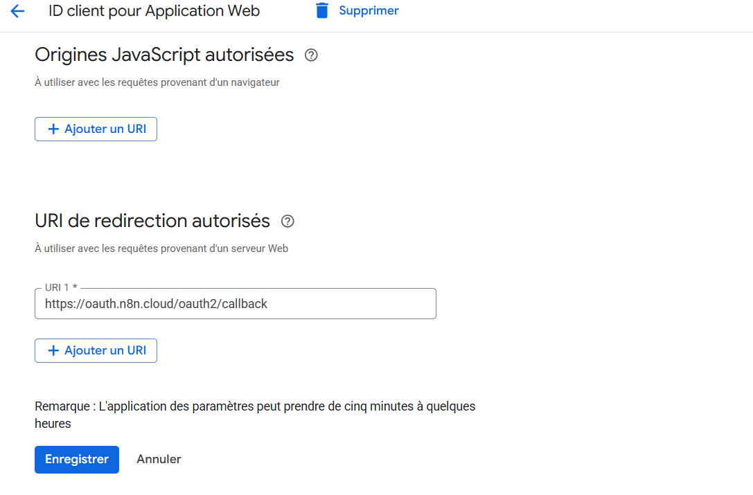 Could you also add the domain in Origines JavaScript autorisées, like in my screenshot
