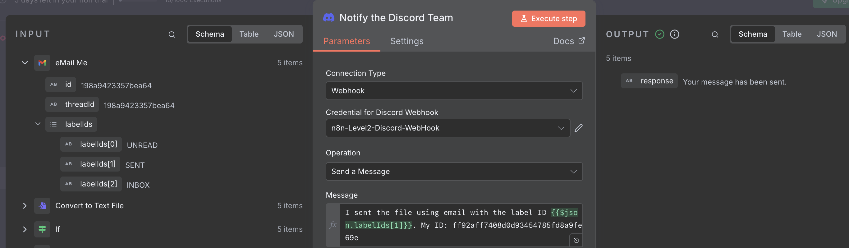 I have created Discord Credentials for the appropriate channel Courses level2.