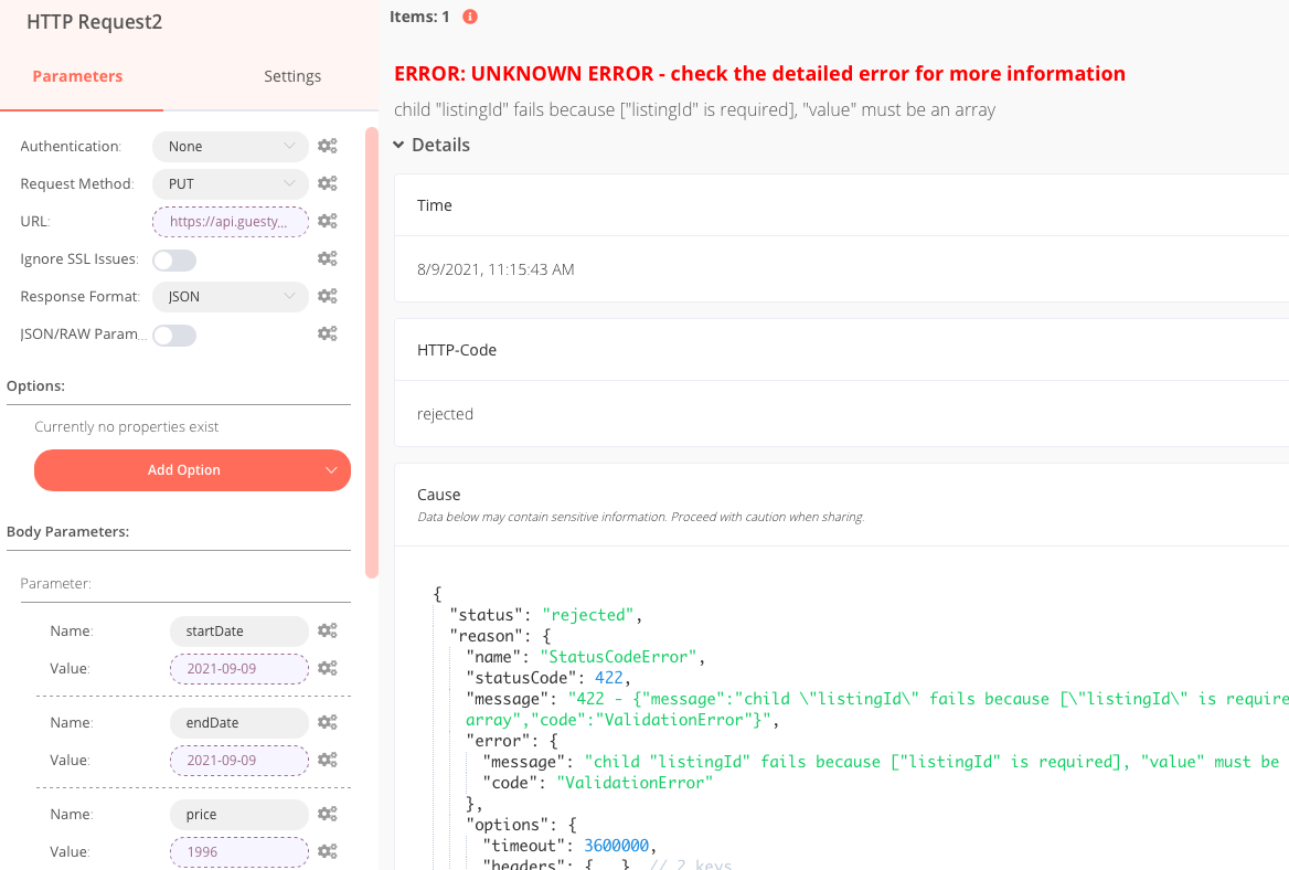 Hi. I am making a PUT http call using a variable path parameter from previous node. While making the call it show error code 422 on the other hand taking same path parameter as a constant value makes a successful http call. Below i have attached screenshot for reference