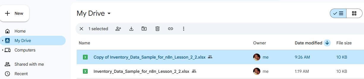 Open with > Google sheet and when it is opened in new browser tab i must select Save As Google Sheet, then i can choose it in sheet node