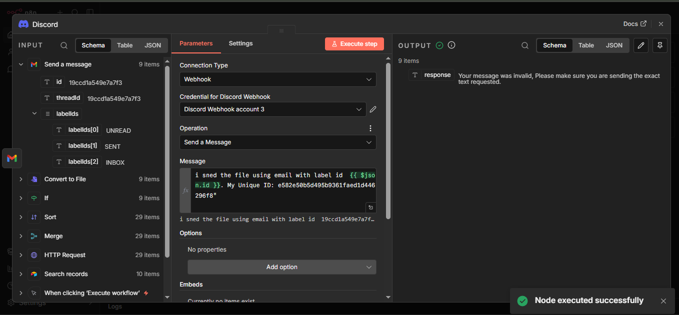 I sent the file using email with the label ID {{ $json.labelIds[0] }}. My ID: e582e50b5d495b9361faed1d446296f8