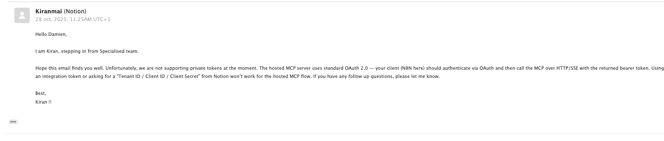 Hi, I’m trying to connect to Notion MCP server in order to ask question to our knowledge base but I’ don’t know how to actually connect N8N to the server.