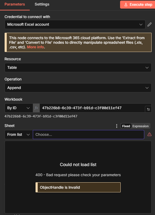 I’m experiencing an intermittent issue with the Microsoft Excel node in n8n.