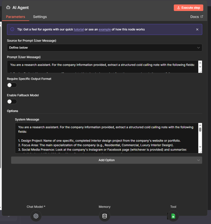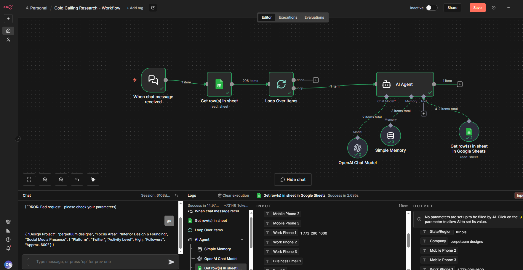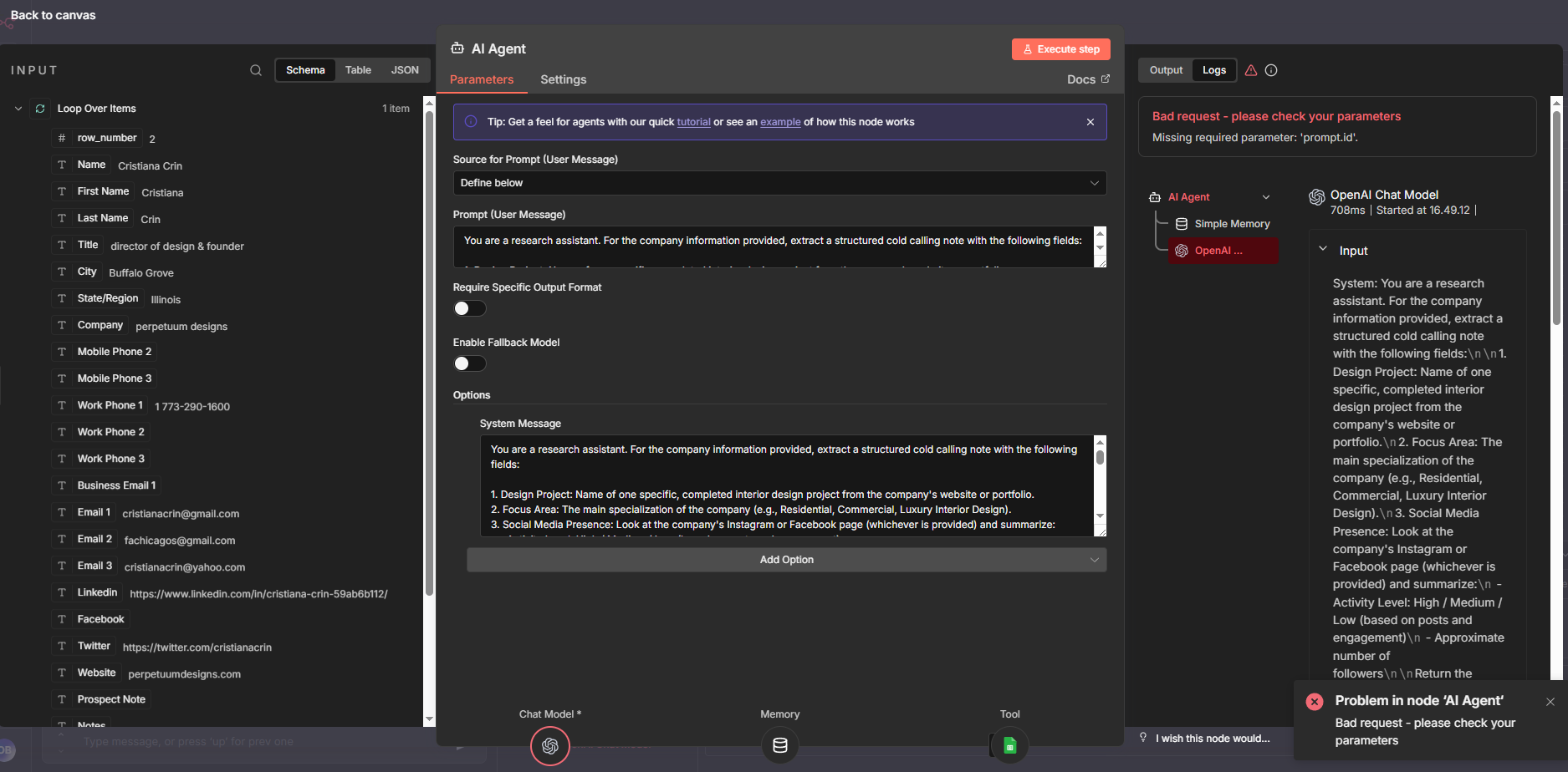 I’m building a cold-calling research workflow in n8n and I’m running into a confusing issue with the OpenAI (ChatGPT) node that I can’t seem to resolve.