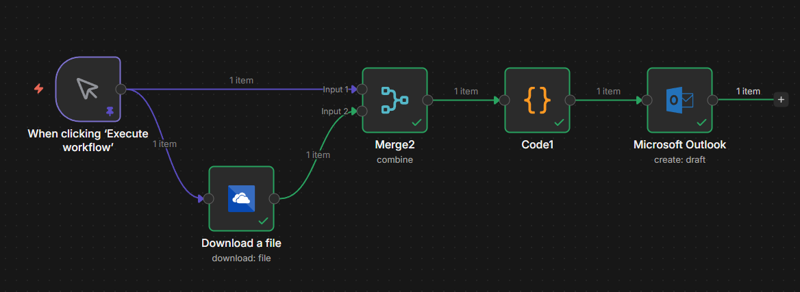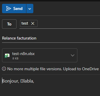 At the end of my workflow, I want to attached documents to an email. I see the documents in the input of the microsoft Outlook node (There is a button Download to have it). But there is an error.
