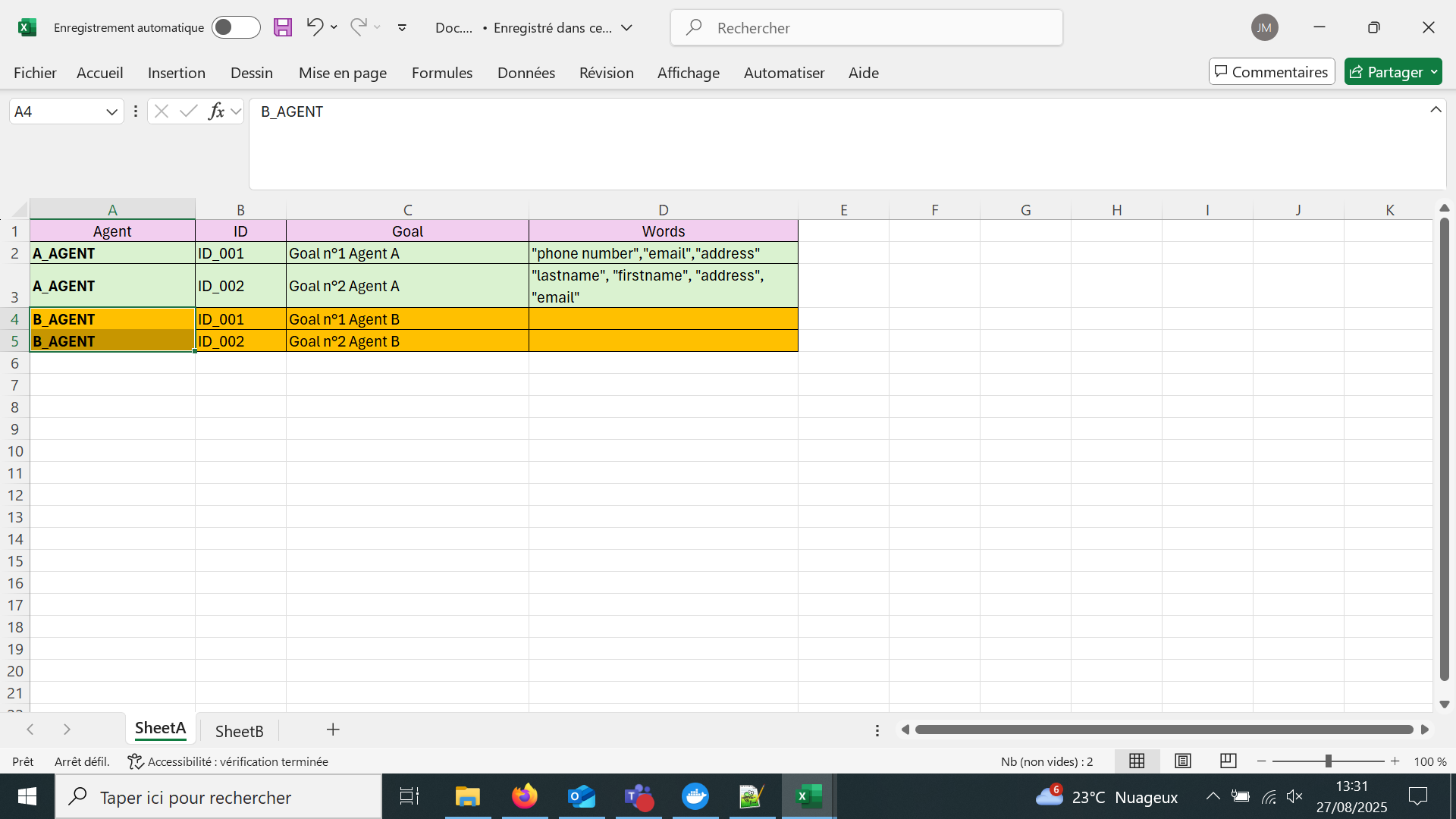 If i ask a question on Chat input, example: What is your lastname? , the Node “Question/answer“ must parse json (result from Agregate Node) and answer : ID: ID_002 and Goal: Goal n°2 Agent A because he found the word “lastname“ on the question and knows the ID is ID_002 by JSON parsing.