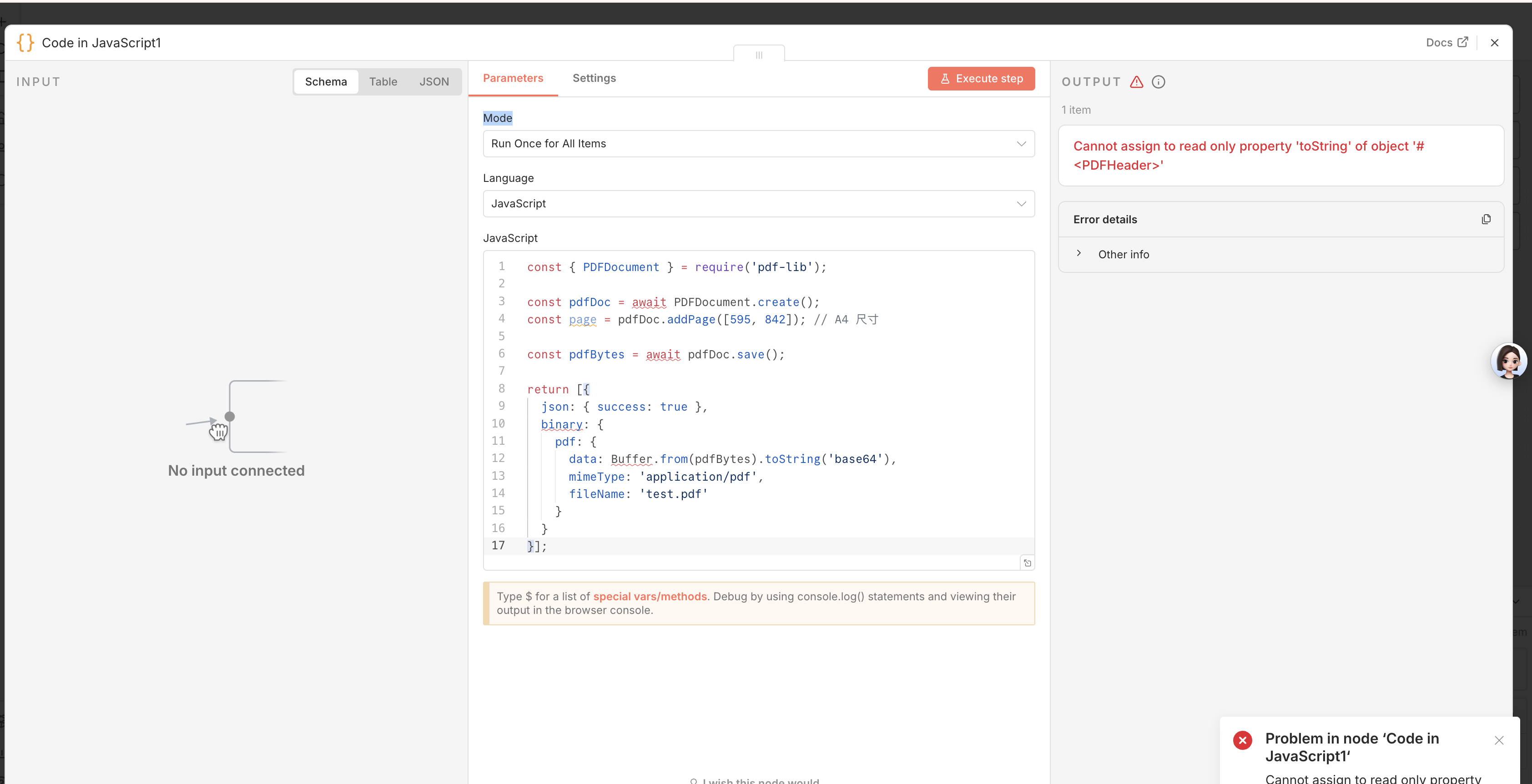 i install the pdf-lib package ,but i can load the package but i meet “read-only” issue in my function node