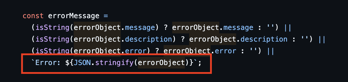 Reality: ”error": "Error: {\"myMessage\":\"An Error has occurred.\"}" - again, stringified JSON formatted into an “Error:” message string.