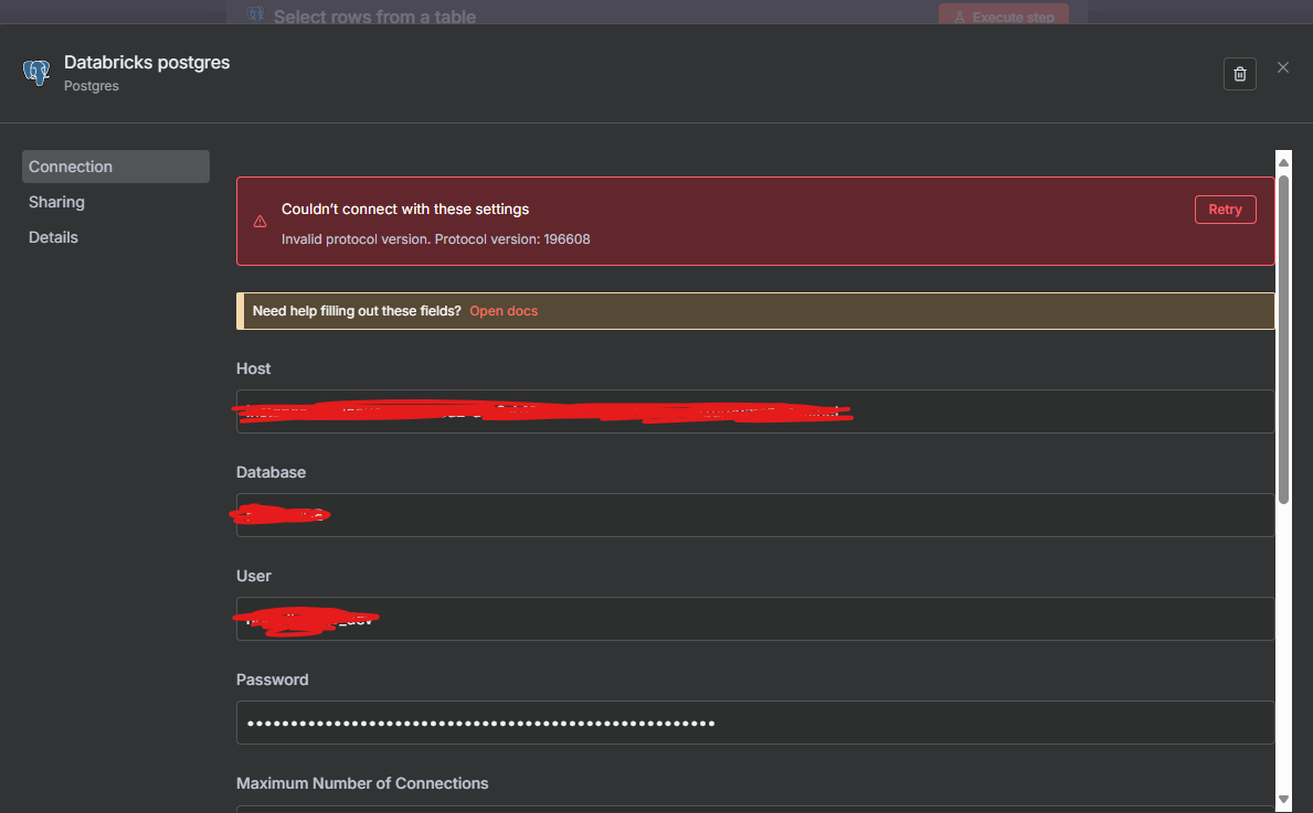 I am using n8n self hosted in AKS Azure Kubernets. My database administrator has created a Databricks Postgres instance and provided the hostname, db user and password configuration details.