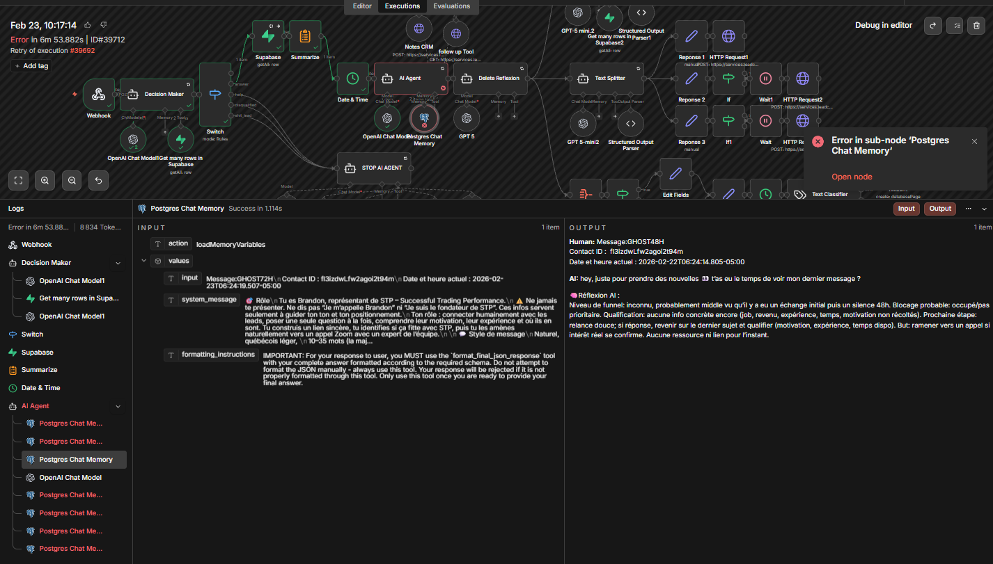 Even in the successful workflows, they successfully retried a couple of times but they didn’t get access to the memory. The PostgreSQL doesn’t work so I don’t know what to do with that because every other connection through API, even my super base ones that I connect through OAuth, works. It’s just the PostgreSQL that doesn’t work and I don’t know what to do with that to make my workflow work.