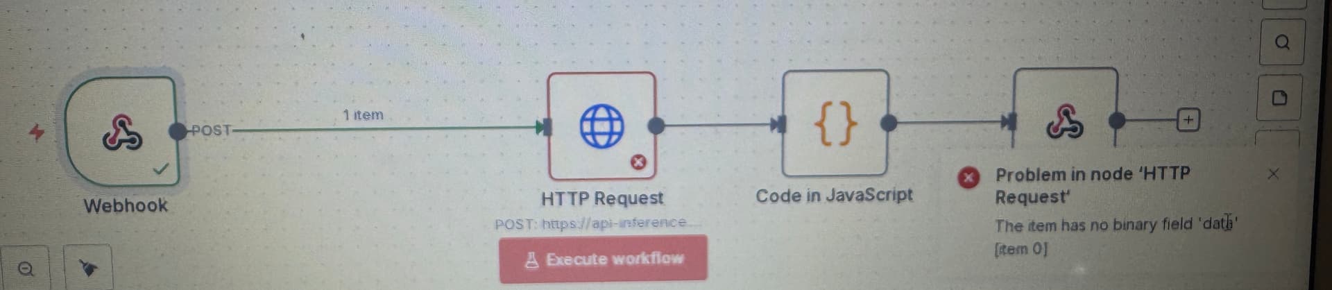 Hi, I’m having an issue with my n8n workflow. My Webhook node receives a PNG image and I want to send it to an API via the HTTP Request node. However, I get the following errors:
