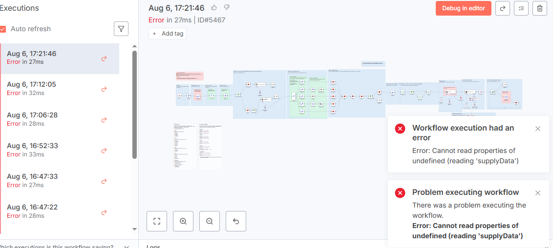 Hi there, i think the issue might be in your webhhok trigger, thts why it ends up not showing which node may have the error.