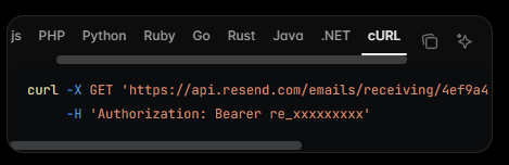 And I’ve read and followed the guide on your attached Resend official doc → Node.js part. I think it require to load the module ([email protected]) first (which I did), then still use webhook to take the values? Or I am understanding wrong and need to make HTTP request? If so, how?