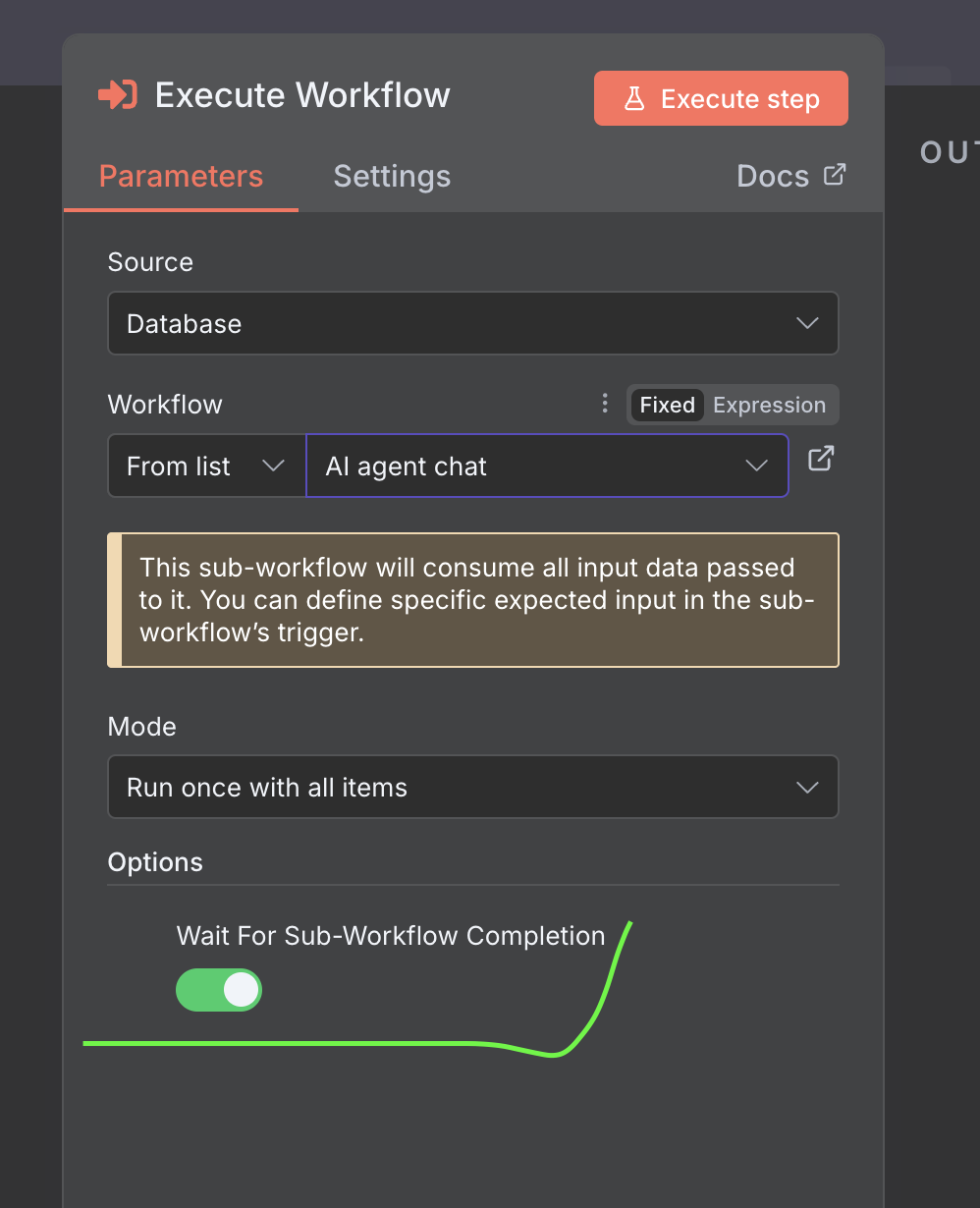 - When called as Agent Tool: Returns data from the node before the Wait node