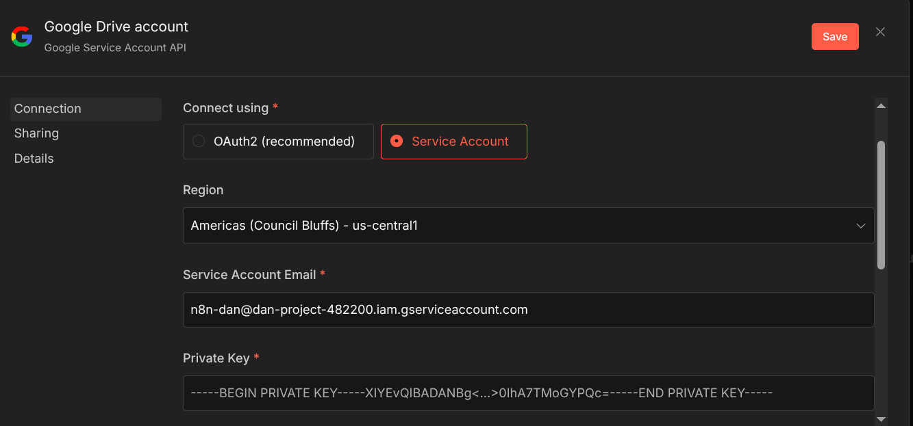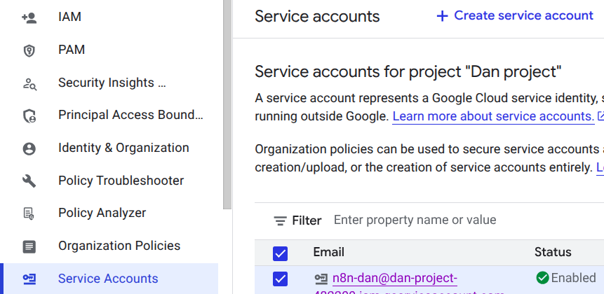 Anyway, go create a google service account. If you’re struggling I’ll add some SC of how i did it & linked to n8n