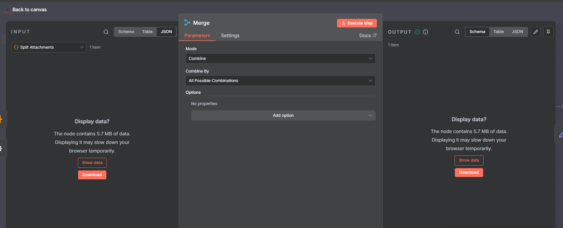 I am trying to extract the attachments, which may be as many as 5 images, and merge them with content from the gmail trigger that has been revised.