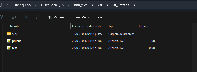 The folder where I want to save the files is c:\n8n_files\OT\01_Entrada. In n8n, it shows up with the "Mount" message.
