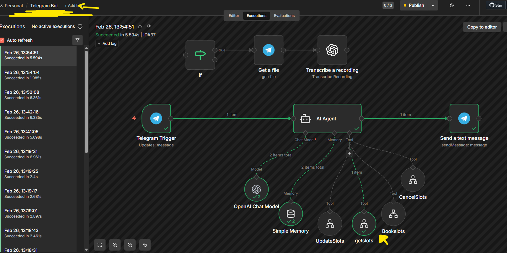 My current approach is to use a trigger (in this case Telegram) that calls an AI Agent and then calls the individual “webhooks” which are replaced by the “Call n8n Workflow” node.
