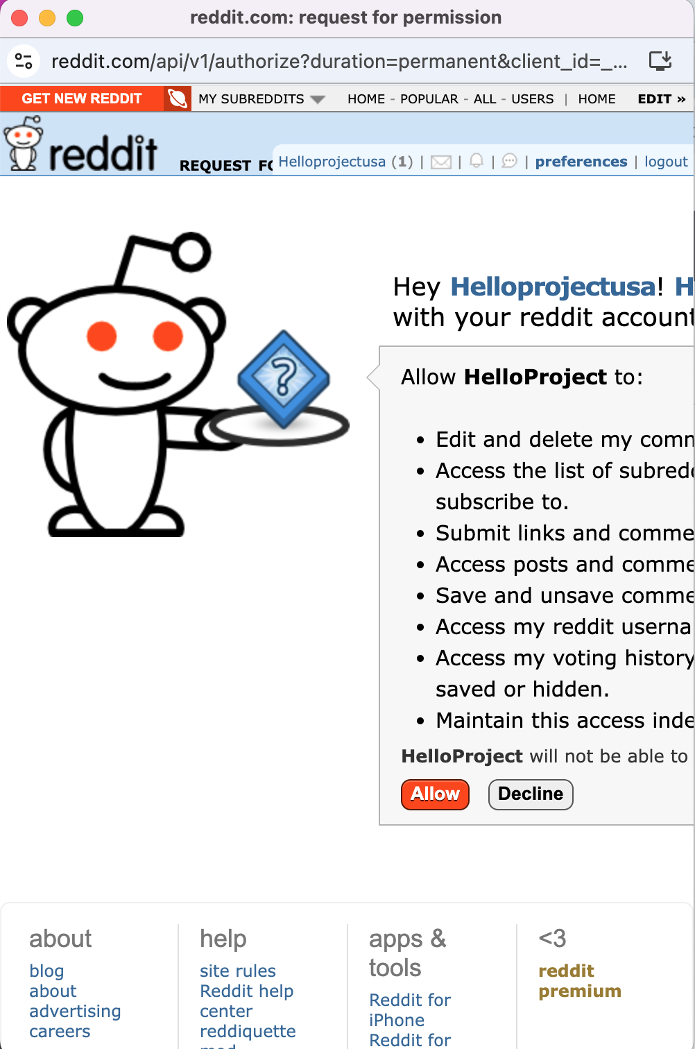 - Delete your existing Reddit app on reddit.com/prefs/apps