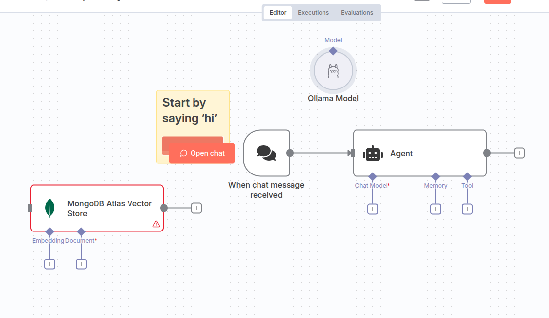 Well it is listening, so when you try to create ollama credentials in n8n using this IP and port what error do you get? I think you only mentioned Mongo previously