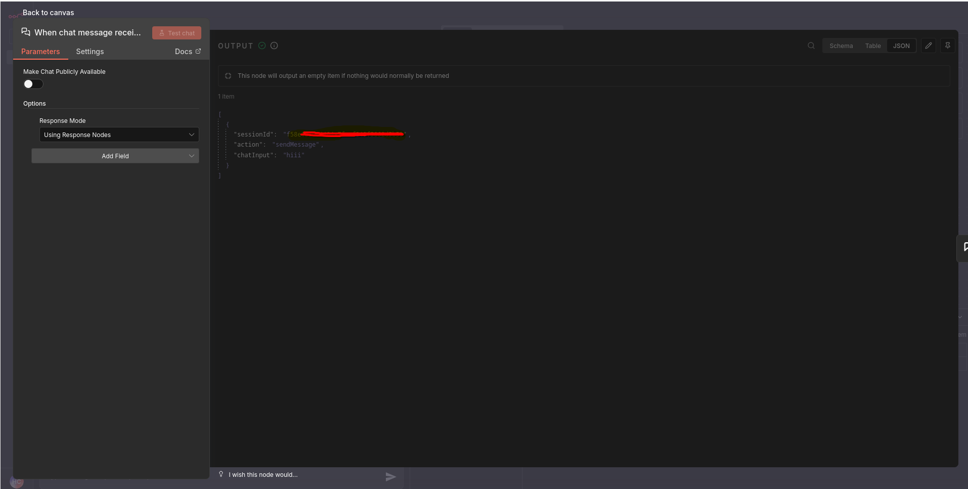 Hi, I am very new to n8n. I was playing around with an agent but my chat box was not receiving any responses. So, I tested with a very very simple workflow (pictured at the end) even though the chat trigger node has been set up with this config: