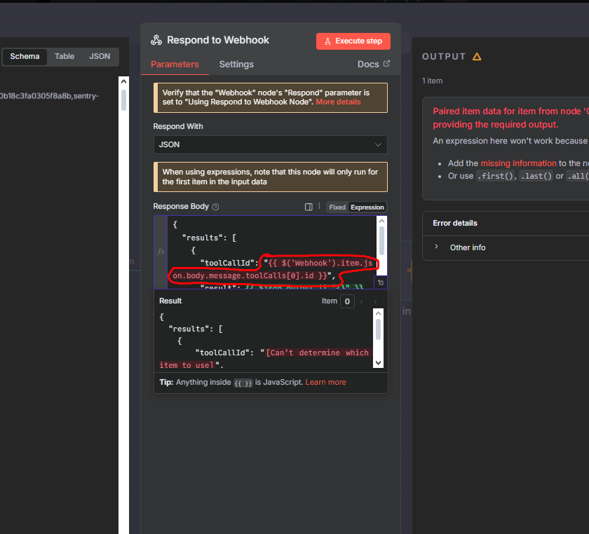 “toolCallId”: “{{ $(“Webhook”).first().json.body.message.toolCalls[0].id }}”,