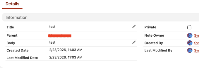 However when I open up the lead contact, I do not see that note that was create in the note section as it was not associating the note with the lead object.