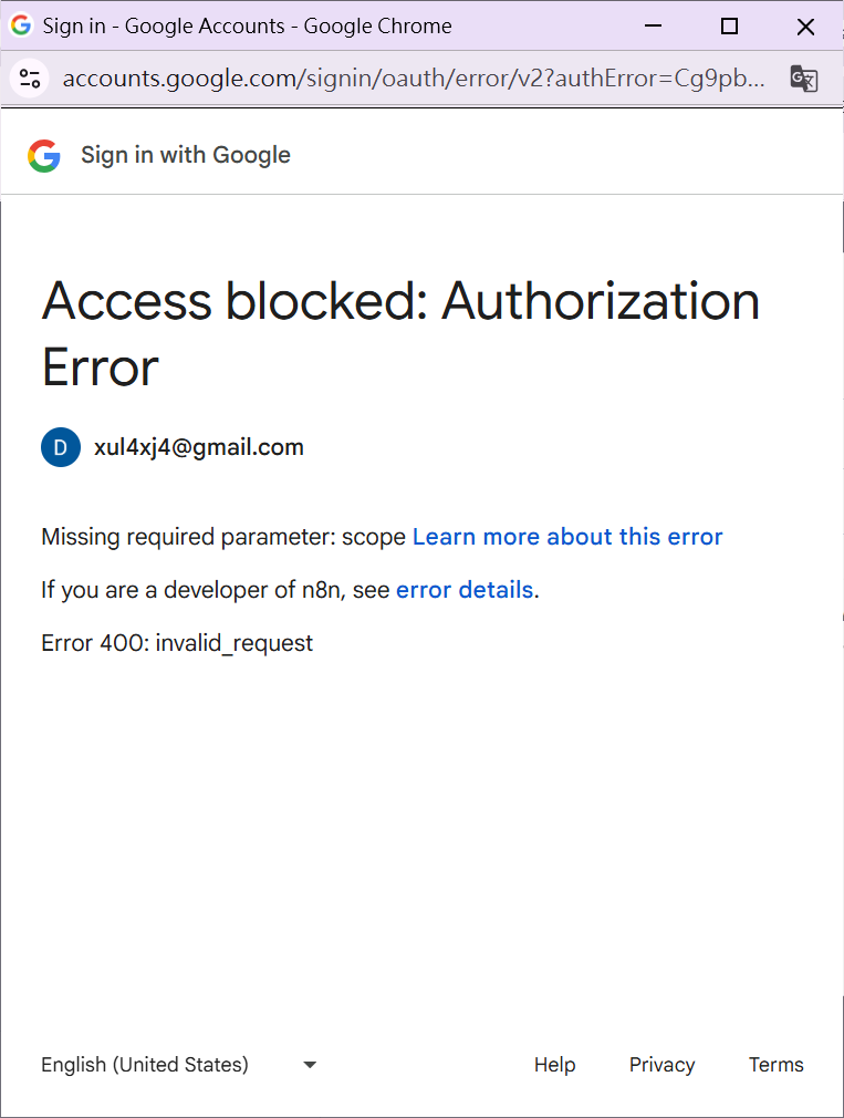 Error 400: invalid request