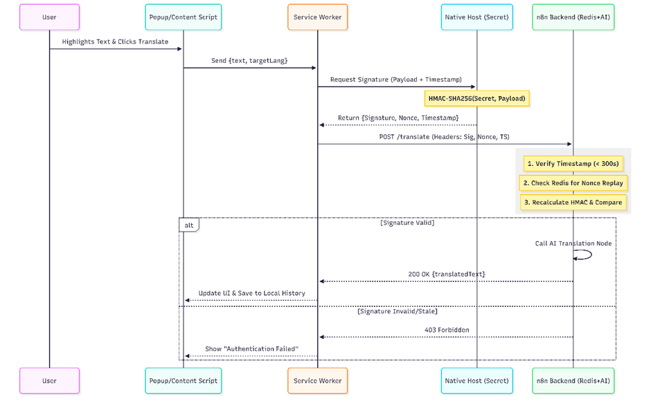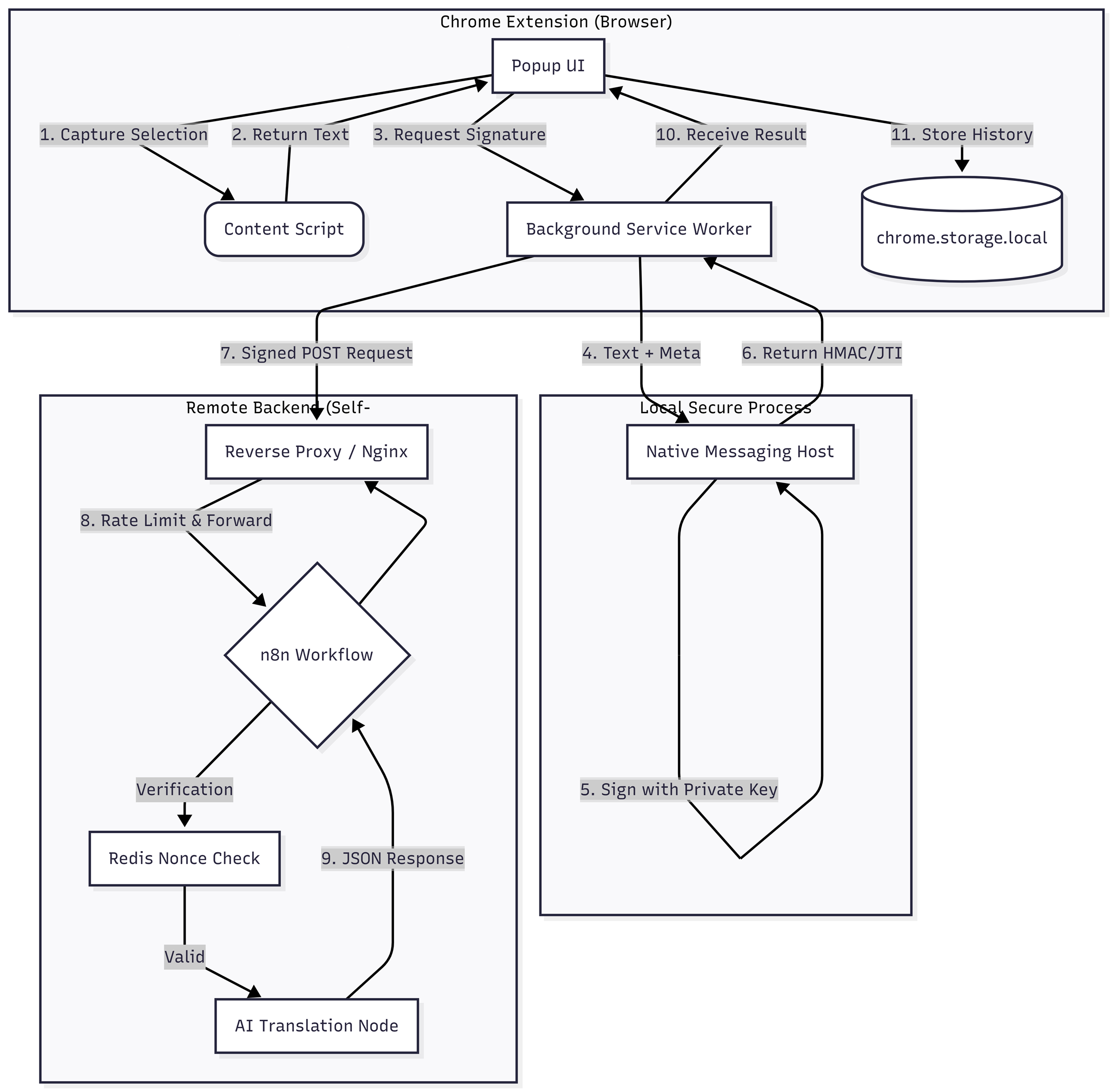 We all know the standard way to build a translation extension: capture text, send it to a webhook with an API key, and hope for the best. But when handling legal documents, proprietary code, or sensitive research, “hoping” isn’t a security strategy.